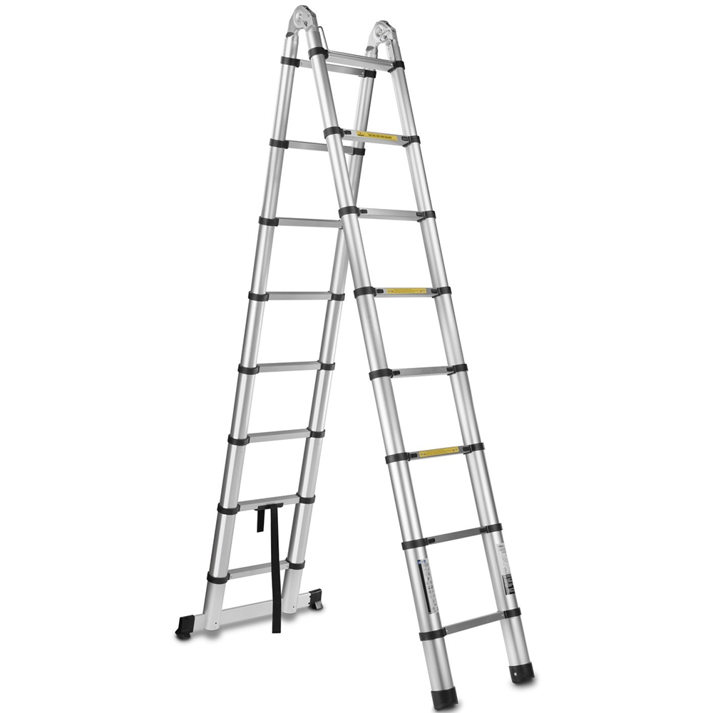 - Drabina teleskopowa przegubowa to zaawansowana wersja drabiny teleskopowej, charakteryzująca się dodatkowym mechanizmem przegubowym, który umożliwia jej ustawienie w różnych kształtach i pozycjach