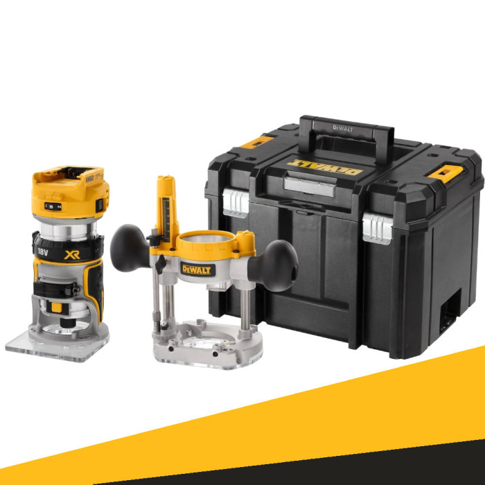 Akumulatorowa frezarka DCW604 zasilana bezszczotkowym silnikiem, który zapewnia dłuższy czas pracy i wydajność