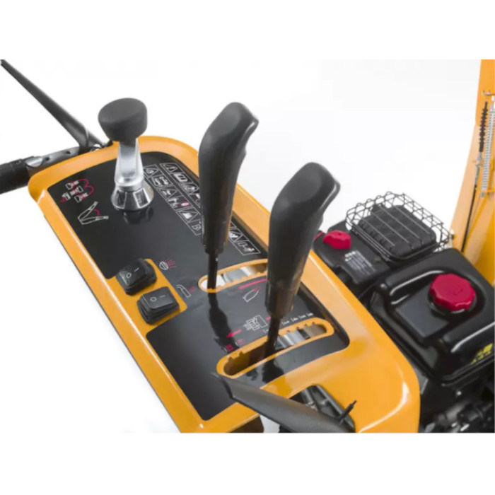 - Wszystkie dźwignie (do sterowania kominem wyrzutu, deflektorem i prędkością) są dogodnie usytuowane na panelu sterowania