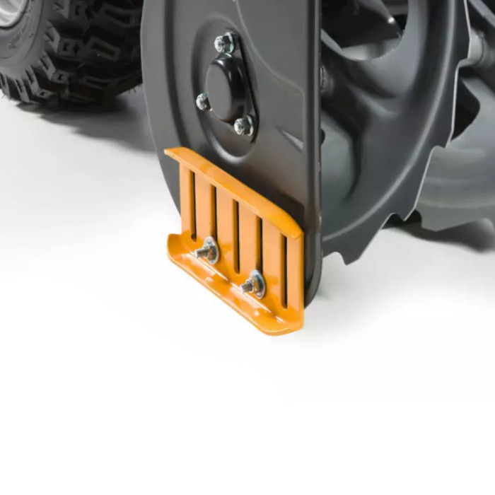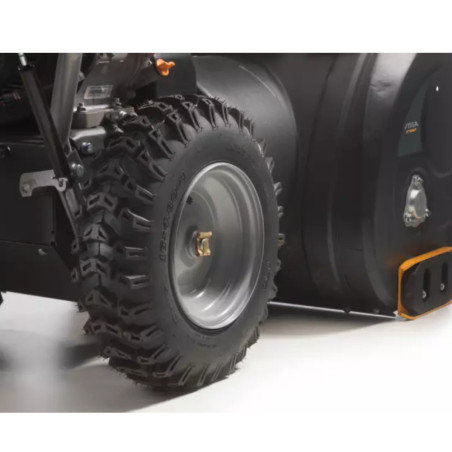 - 14" opony Snow Hog zapewniają dużą przyczepność, a dwie odwracane płozy (z metalu/polietylenu) pozwalają na pracę na każdym rodzaju powierzchni i nie powodują uszkodzeń tych delikatniejszych