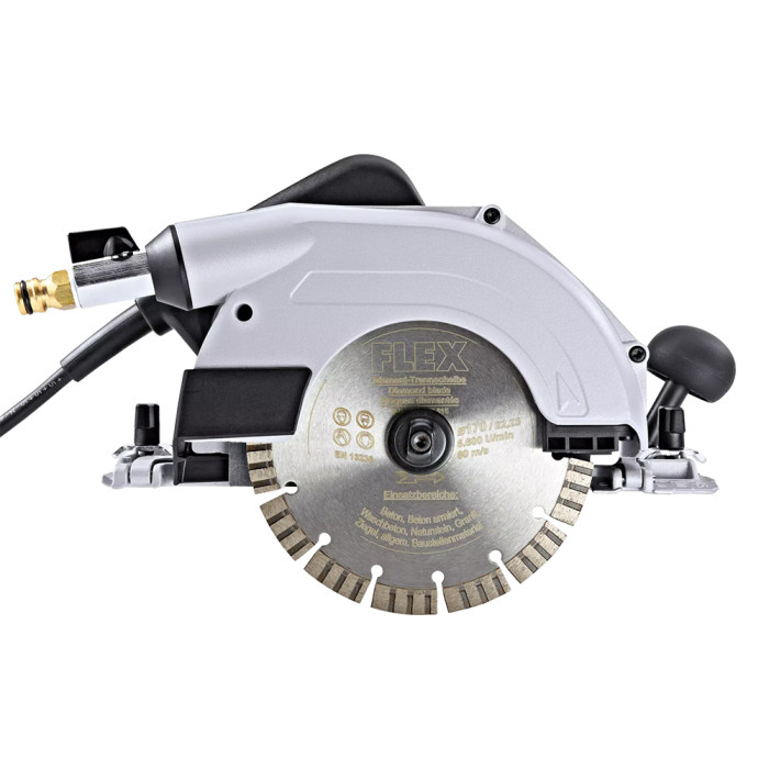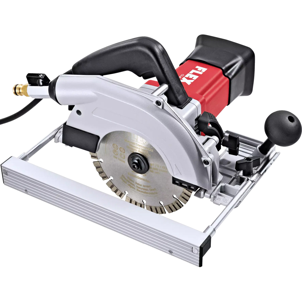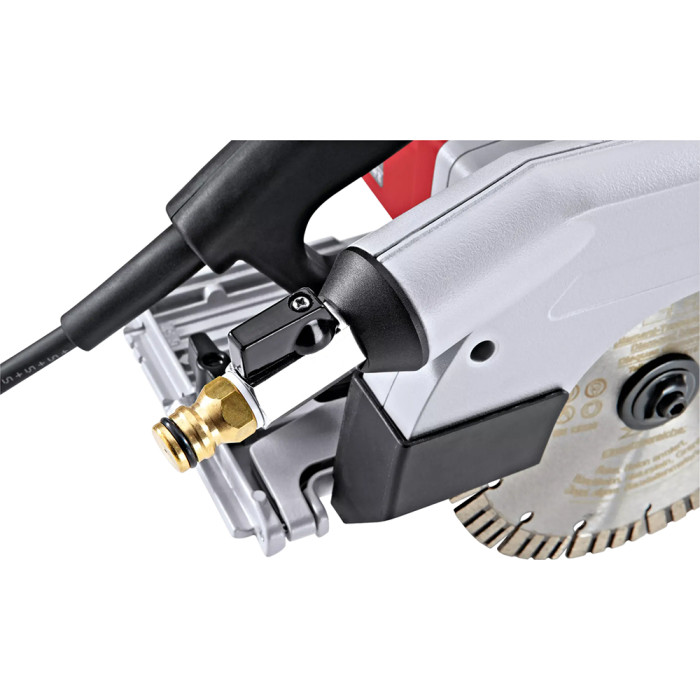 - Przecinarka z prowadnicą do cięcia na mokro kamienia naturalnego i sztucznego z wyłącznikiem PRCD, z możliwością cięcia pod kątem 45°
