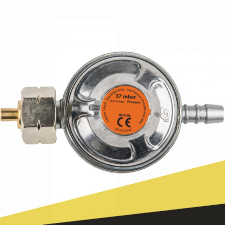 - Jednostopniowy reduktor ciśnienia gazu propan-butan z wlotem gwintowym i króćcem na wąż
