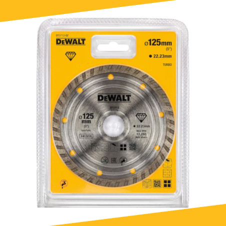Dzięki cienkiemu rzazowi zwiększającemu prędkość cięcia i jednocześnie ograniczającemu pylenie , wydajne tarcze DEWALT Turbo są wyposażone w wydajny i niezwykle trwały układ diamentowy oferujący 200-krotnie większą żywotność od tradycyjnych tarczy ściernych. Zapewnia zwiększoną prędkość cięcia na stałej głębokości. Idealnie nadaje się do cięcia ręcznych materiałów murarskich , w tym bloczków, sidingu itp.