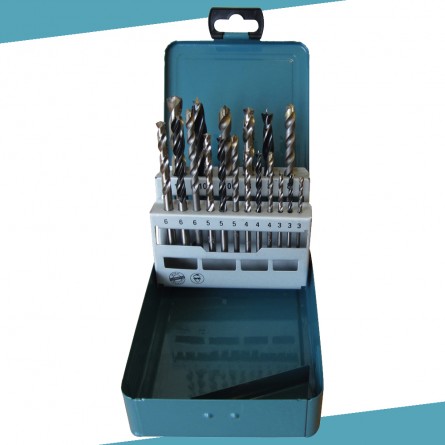 - Potrójny zestaw wierteł w metalowym pudełku